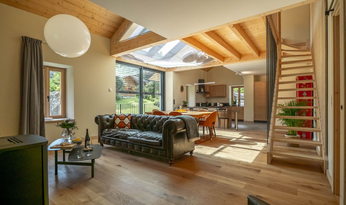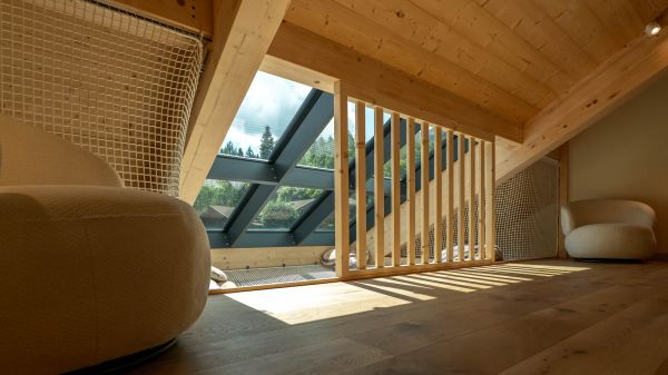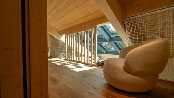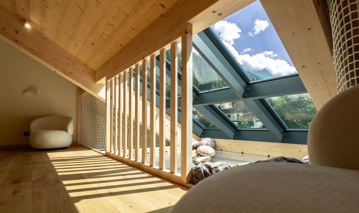 A paradise for children and undoubtedly for adults too. A giant hammock, open on both levels, invites you to contemplate the peaks and the surrounding nature. Here, luxury lies in the beautiful spaces, the view and the light.